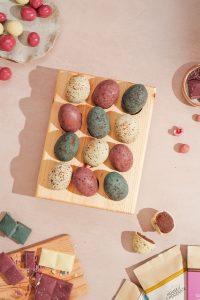 Shape the Eggs: Scoop equal portions (~35–40g), roll into balls, then shape into eggs. Place on a lined tray and freeze for 30–45 minutes.