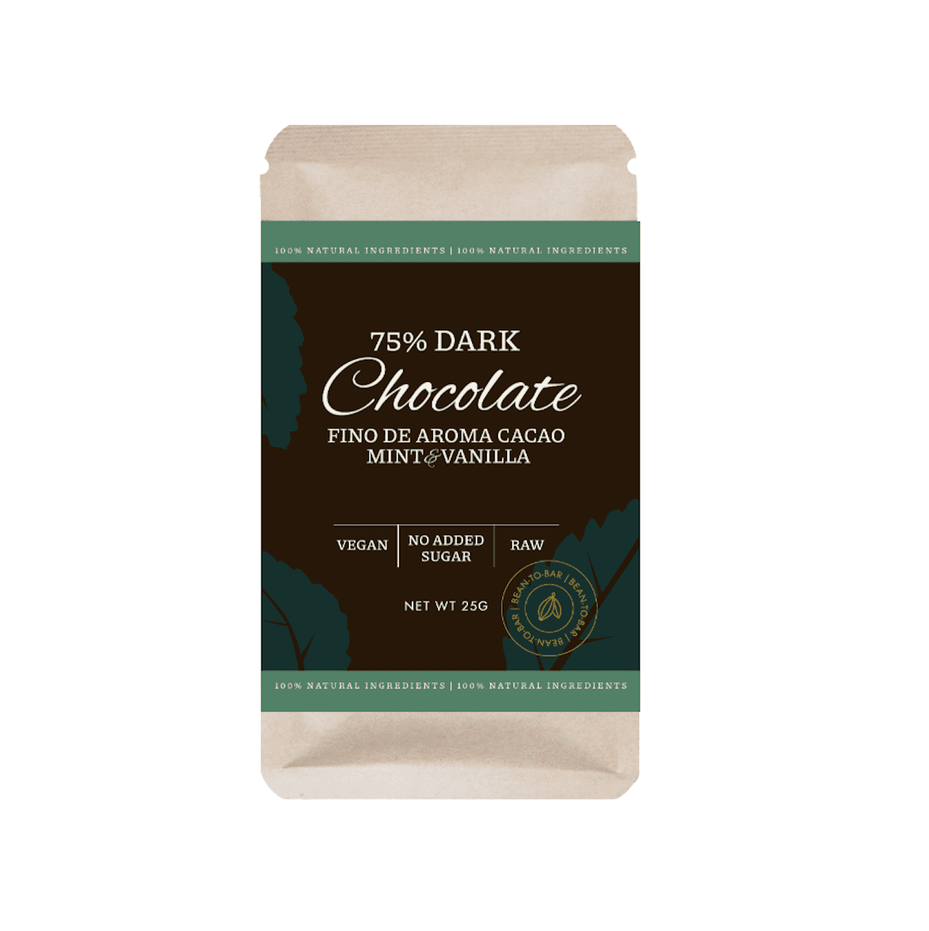 This 75% dark chocolate is made with the highest-quality ‘Fino de Aroma’ cacao beans mixed with mint and vanilla. The cacao beans are ground into a paste without heating to preserve all their natural benefits and make the chocolate easier for your body to digest. It is sweetened with just 2% dried melon juice instead of sugar, offering a healthy alternative that retains the same pleasant sweetness.