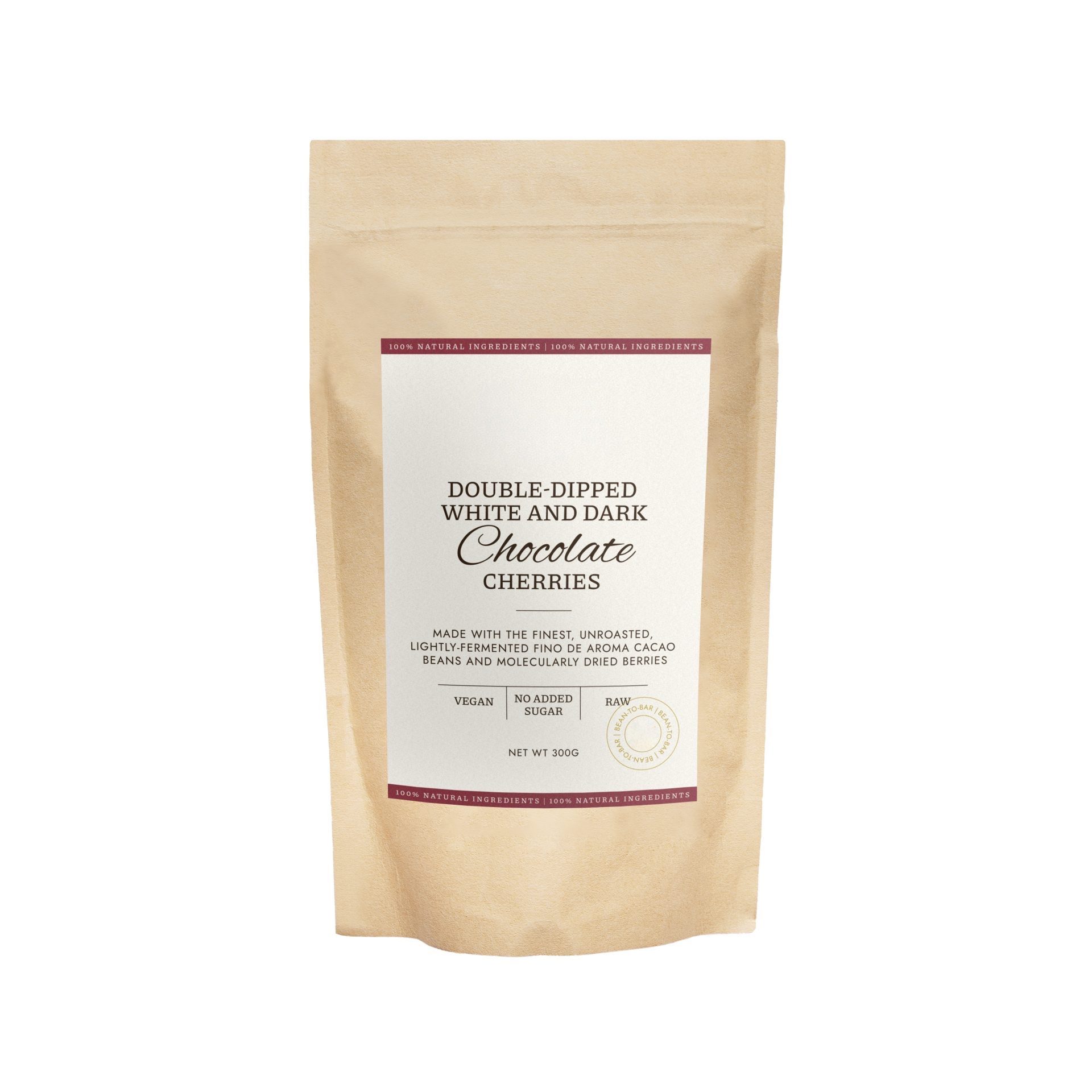 Our double-dipped white and dark chocolate cherries are a luxurious treat that combines molecularly dried cherries, mango, passion fruit, and premium Fino de Aroma Peru San Martin cacao beans. As the chocolate is enriched with coconut and almond mylk, dandelion juice, and saffron, each bite delivers a unique fusion of flavours, creating an unforgettable chocolate experience.